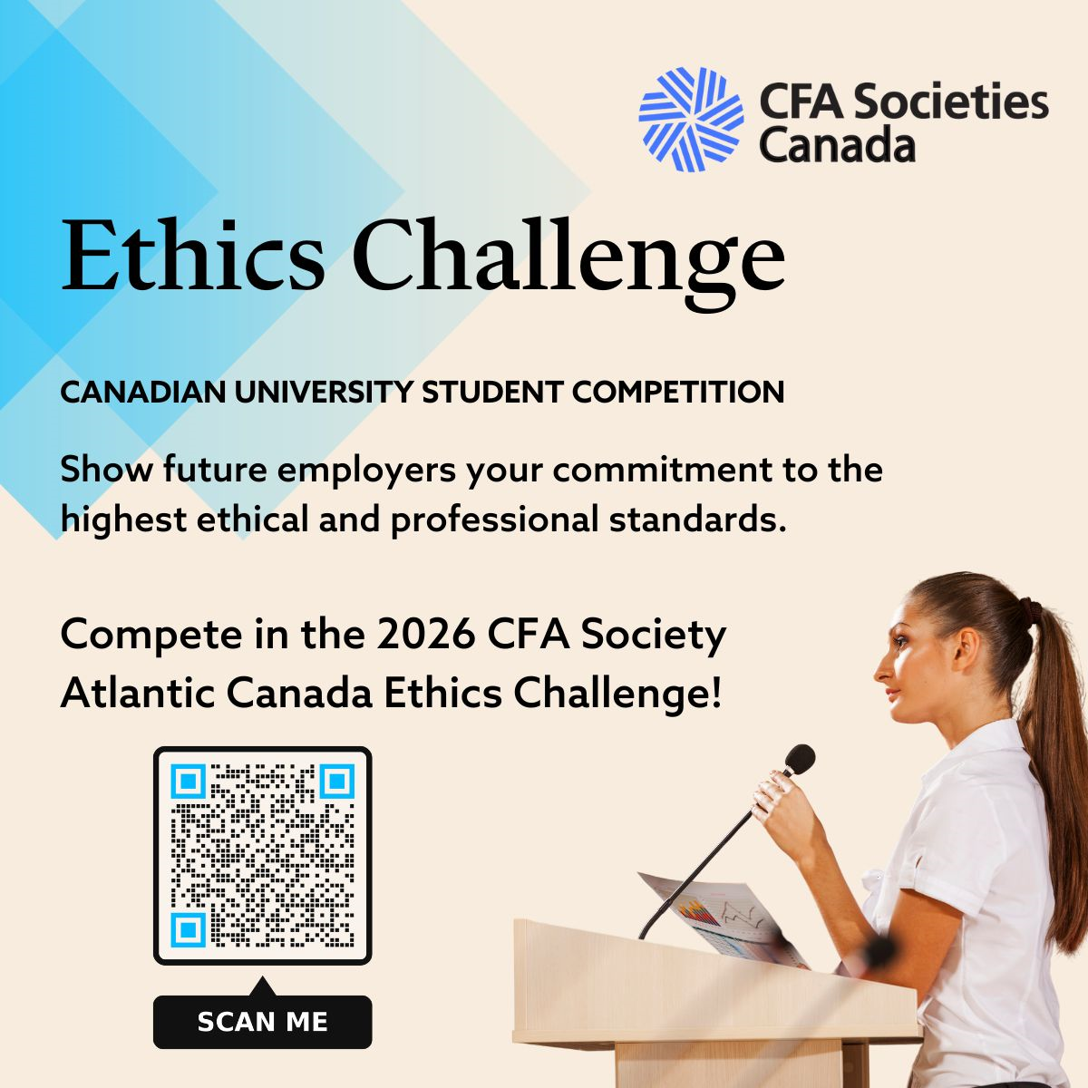 The CFA Societies Canada Ethics Challenge is designed to increase students’ awareness of the ethical dilemmas and issues they may face as investment management professionals. Teams consisting of students from finance or business programs (usually from CFA Institute’s University Affiliation Program) are given an ethics case to analyze and evaluate. Each team then presents its analysis and recommendations, to a panel of judges, selected by the host CFA Society.