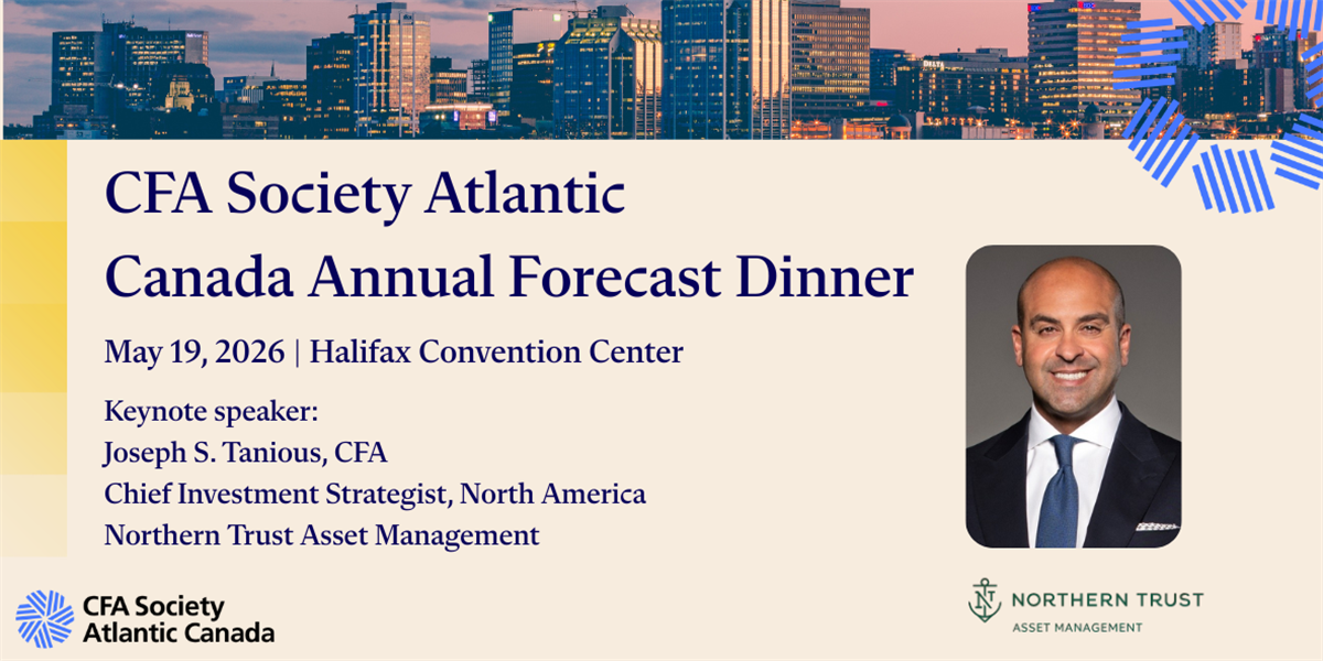 The CFA Society Atlantic Canada Annual Forecast Dinner will be held on May 19, 2026, at the Halifax Convention Centre . This signature event brings together investment professionals, asset owners, advisors, and CFA charterholders from across the region for an evening of market insight and professional recognition. We are pleased to welcome Joseph Tanious , Chief Investment Strategist of Northern Trust Asset Management , as this year’s keynote speaker. In his role overseeing multi-asset investment strategy, Mr. Tanious translates global macroeconomic developments into portfolio positioning decisions across asset classes. His remarks will focus on the key economic forces shaping markets in 2026 and the implications for asset allocation and risk management. The program will also feature the presentation of the Terry Milne Volunteer Award, the My One Stock Award, and the Forecaster of the Year Award, recognizing excellence and leadership within our community. We look forward to welcoming members and guests for an evening of thoughtful discussion, professional engagement, and collegial connection. Use the "More Information" link below to be take to the registration website for  this event.