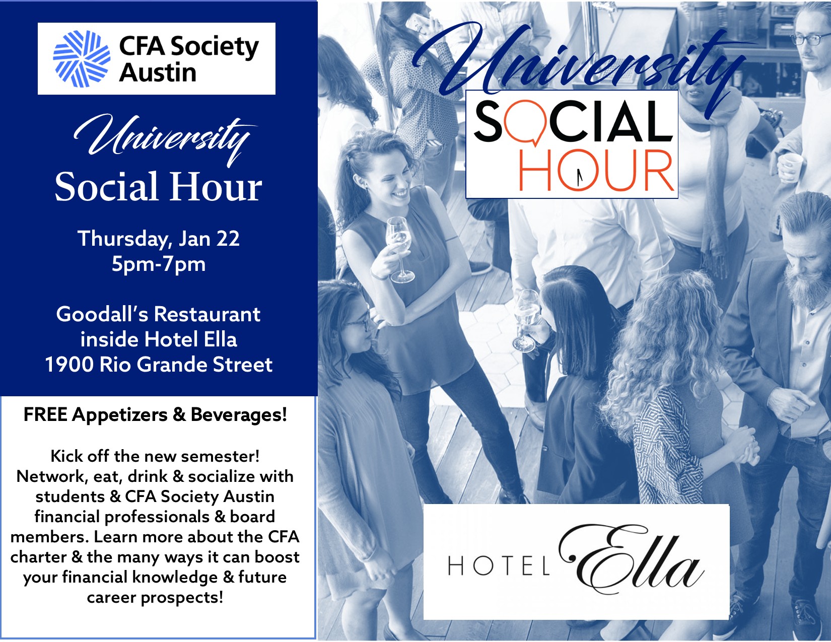 Kick off the new semester and network, eat, drink and socialize with students and CFA Society Austin financial professionals and board members.