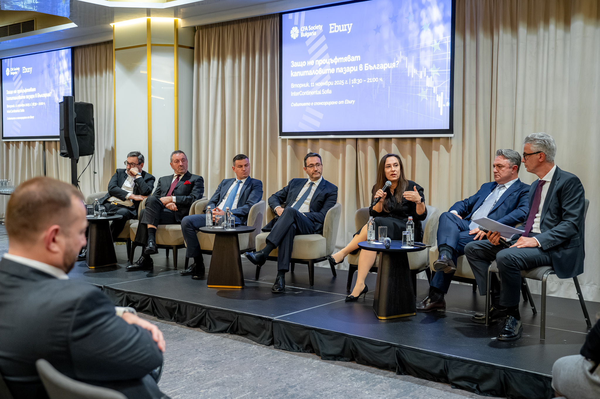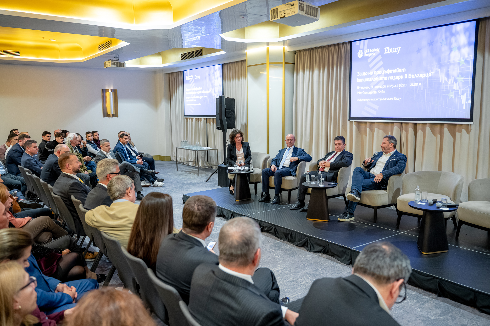 Without structured reforms and strategic decision-making, Bulgaria’s capital markets will continue to struggle to reach their full potential and support a competitive economy. This was the focus of the conference "Why are capital markets in Bulgaria not thriving?", organized by the Bulgarian CFA Association. The event took place on November 11, 2025, from 6:30 p.m. to 9:45 p.m. at the Intercontinental Sofia Hotel and brought together more than 300 participants – professionals from the financial sector, representatives of state institutions, investors, and industry experts. Although the official program concluded at 9:45 p.m., discussions continued after the end, reflecting both the significance of the topic and the strong interest and engagement of the audience.