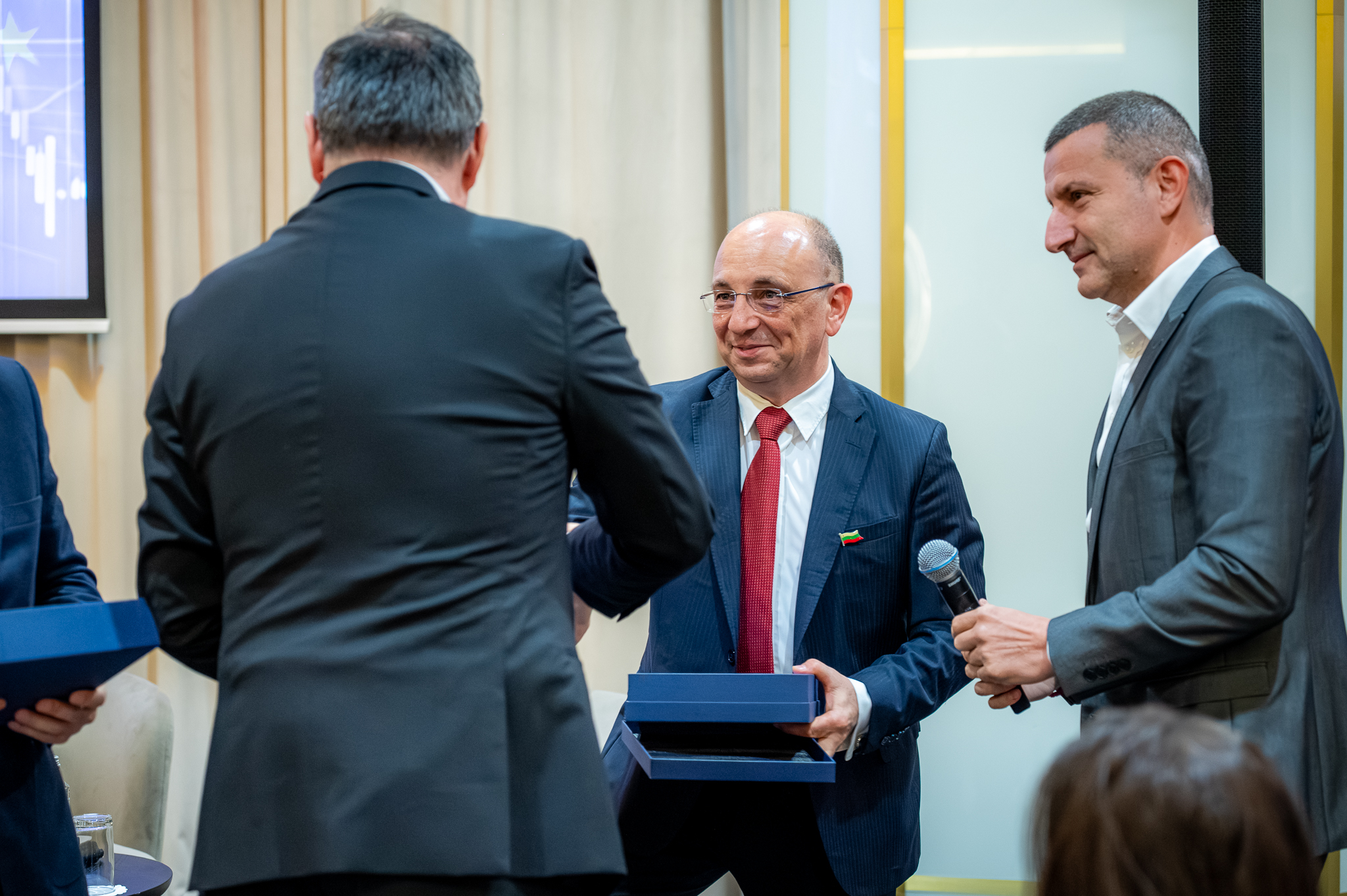 The event opened with remarks from Nikolay Vassilev, CFA, Chairman of the Board of Directors of the Bulgarian CFA Association. The evening’s host was Ivaylo Penev, CFA, Executive Director of Elana Fund Management. At the outset, special awards for overall contribution to the development of Bulgaria’s capital markets were presented to Apostol Apostolov, Chairman of the Supervisory Board of Texim Bank; Kamen Kolchev, Chairman of the Management Board of Elana; Vasil Golemanski, Chairman of the Financial Supervision Commission; and Stanimir Karolev, founder of Karol Finance. The recognitions honored their longstanding efforts and significant influence on the sector.