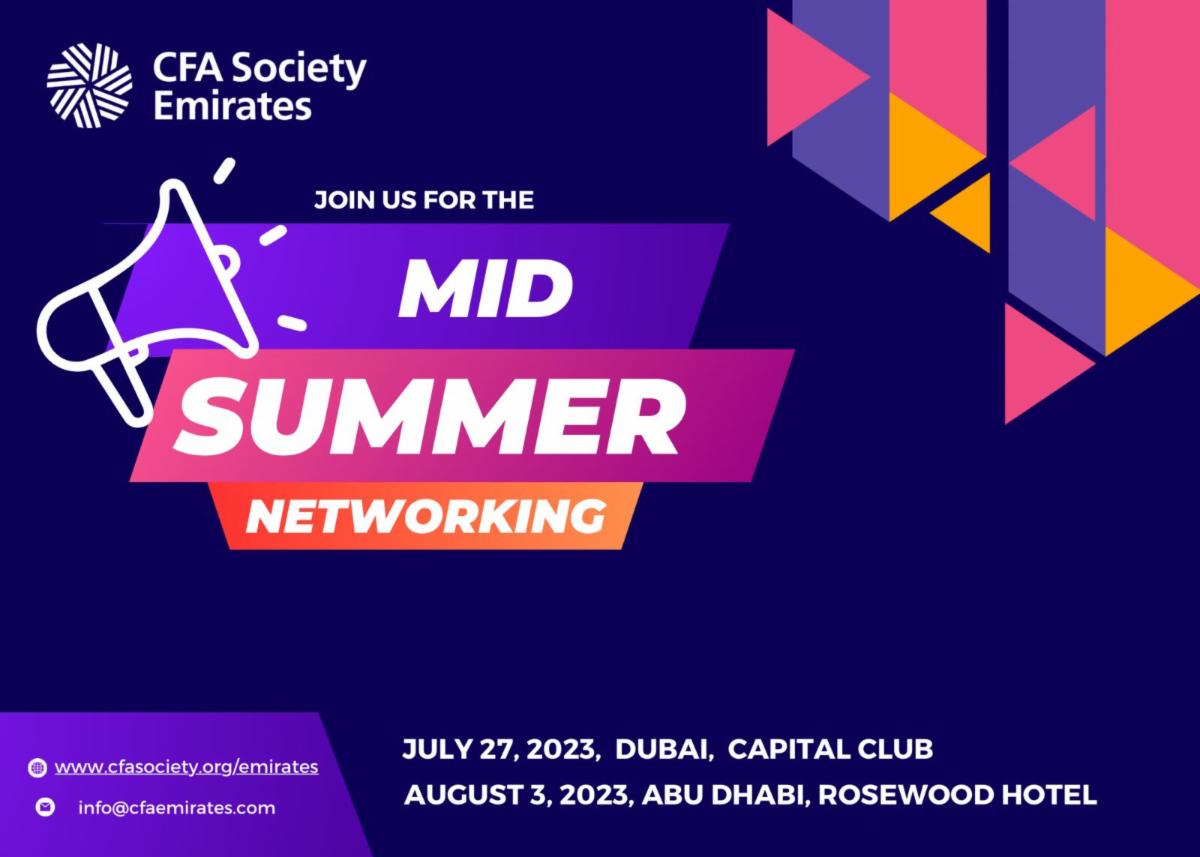 It is with great pleasure, we write to extend an invitation to you for a mid-summer networking and socializing event. The event will take place in Dubai on the 27th of July, 023, and in Abu Dhabi on the 3rd of August, 2023.