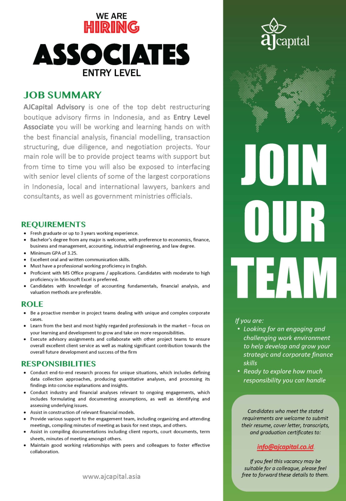 • Bachelor’s degree in Finance, Accounting, Economics, or a related field. CFA designation or progress toward it is highly preferred.