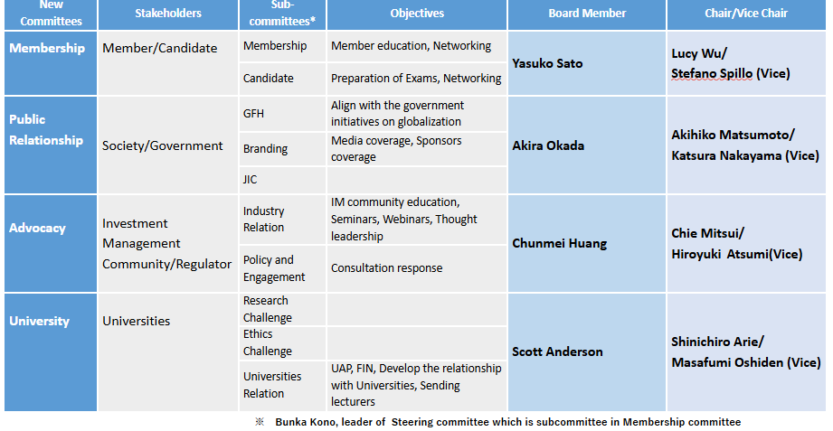 さらに詳細はこちらをご覧ください。https://community.cfainstitute.org/japan/about-us/leadership