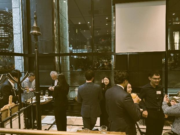 On May 8, 2025, we held our fourth networking event at “MASTER’S DREAM HOUSE Marunouchi” near Tokyo Station. It was a casual, standing-only setting designed to encourage interaction among CFA Society Japan members. Thank you to the approximately 60 people who attended.