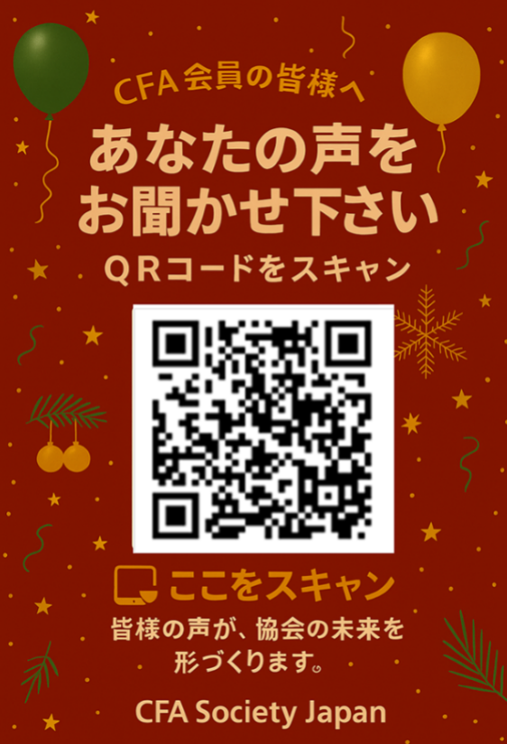日本CFA協会会員の方々には会員満足度調査キャンペーン中です。下記QRコードから皆様のご意見・アドバイスをお寄せください。