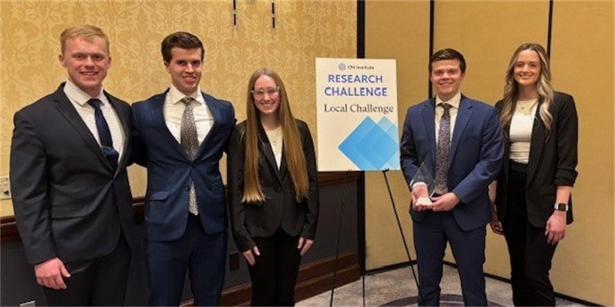 Congratulations to UW Whitewater - Purple Team for winning the 2025 Local Finals of the Research Challenge. Next, they will submit their presentation for the Sub-Regionals. Good Luck UW Whitewater - Purple Team! The team members include - Alexa Gill, Kelsey Hengst, Nathan Parrish, Josh Peterson, and Carter Voigt.
