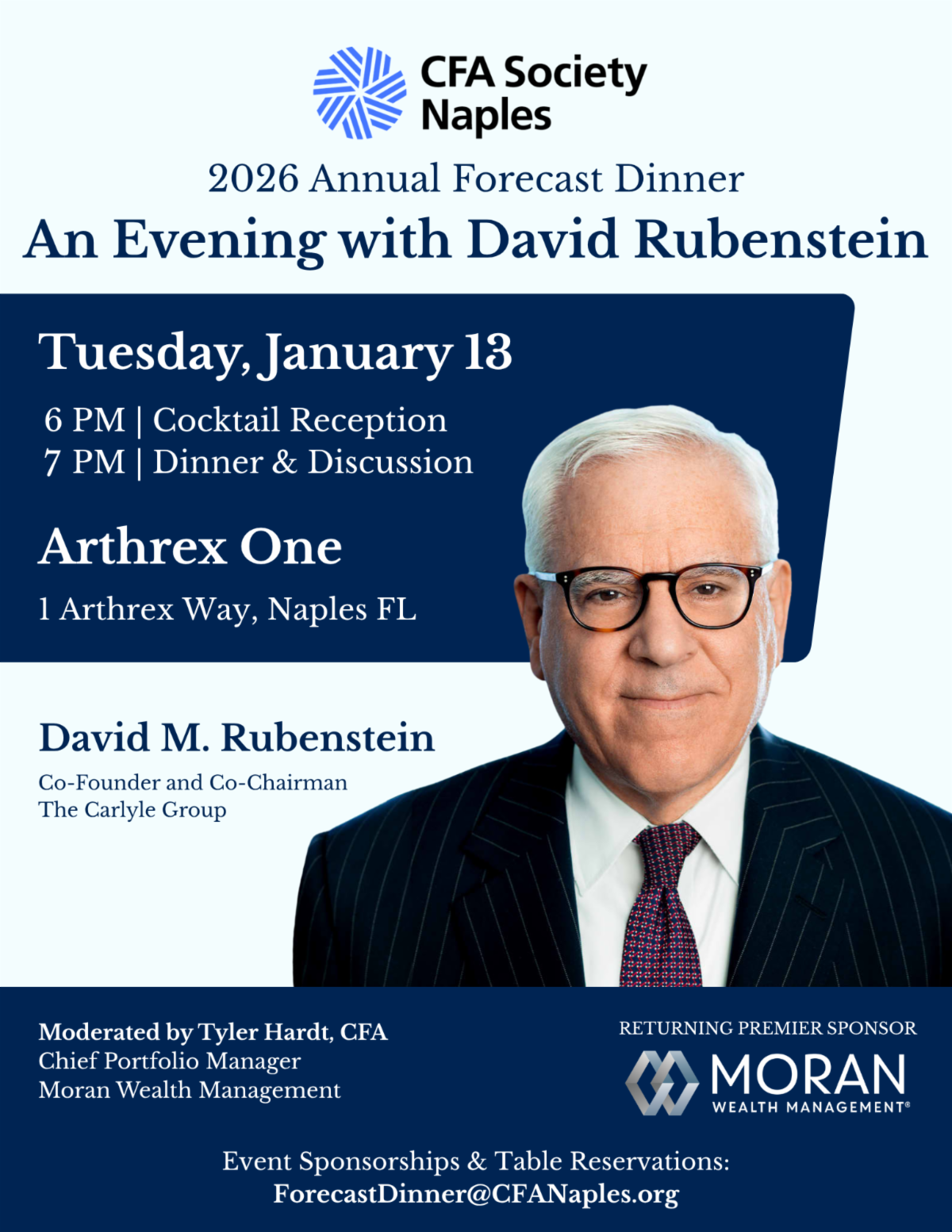 CFA Society Naples invites you to attend our Annual Forecast Dinner, the premier financial event in Southwest Florida, on Tuesday, January 13, 2026, at Arthrex One in Naples, Florida.