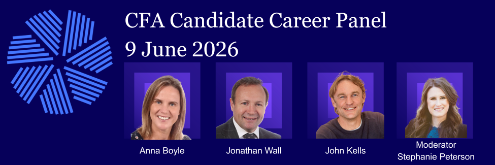 This panel features Anna Boyle, CFA, Jonathan Wall, CFA and John Kells, CFA, and is moderated by Stephanie Peterson, CFA. Representing key CFA specialisations—Portfolio Management, Private Wealth, and Private Markets—they will share their career journeys, day-to-day roles, and how the CFA designation has supported their professional development.