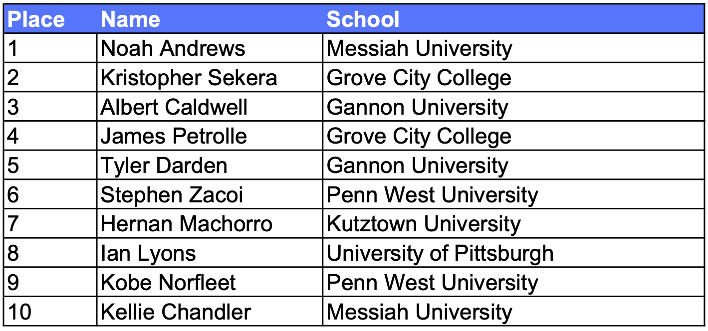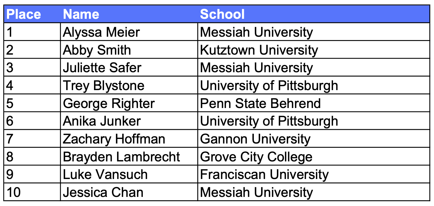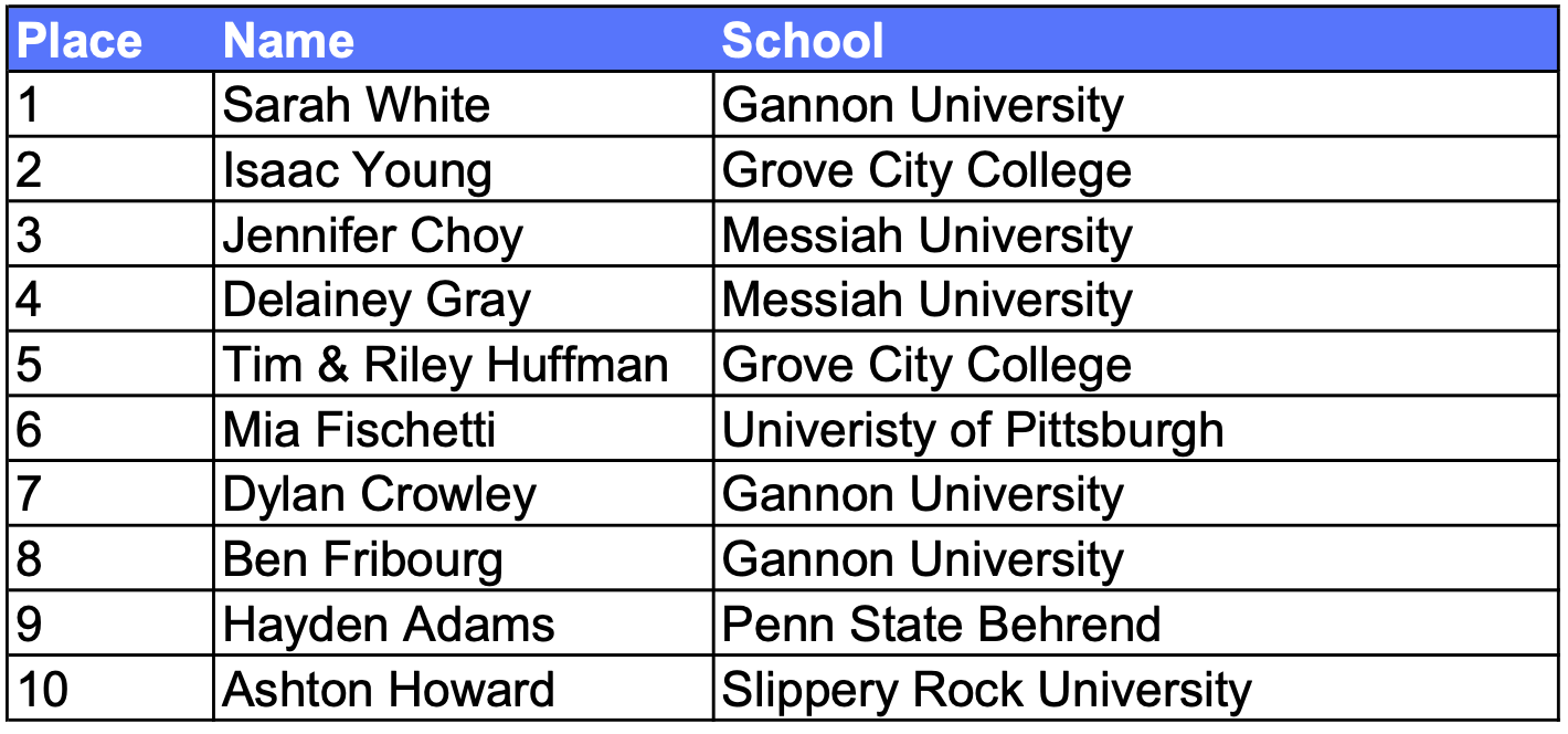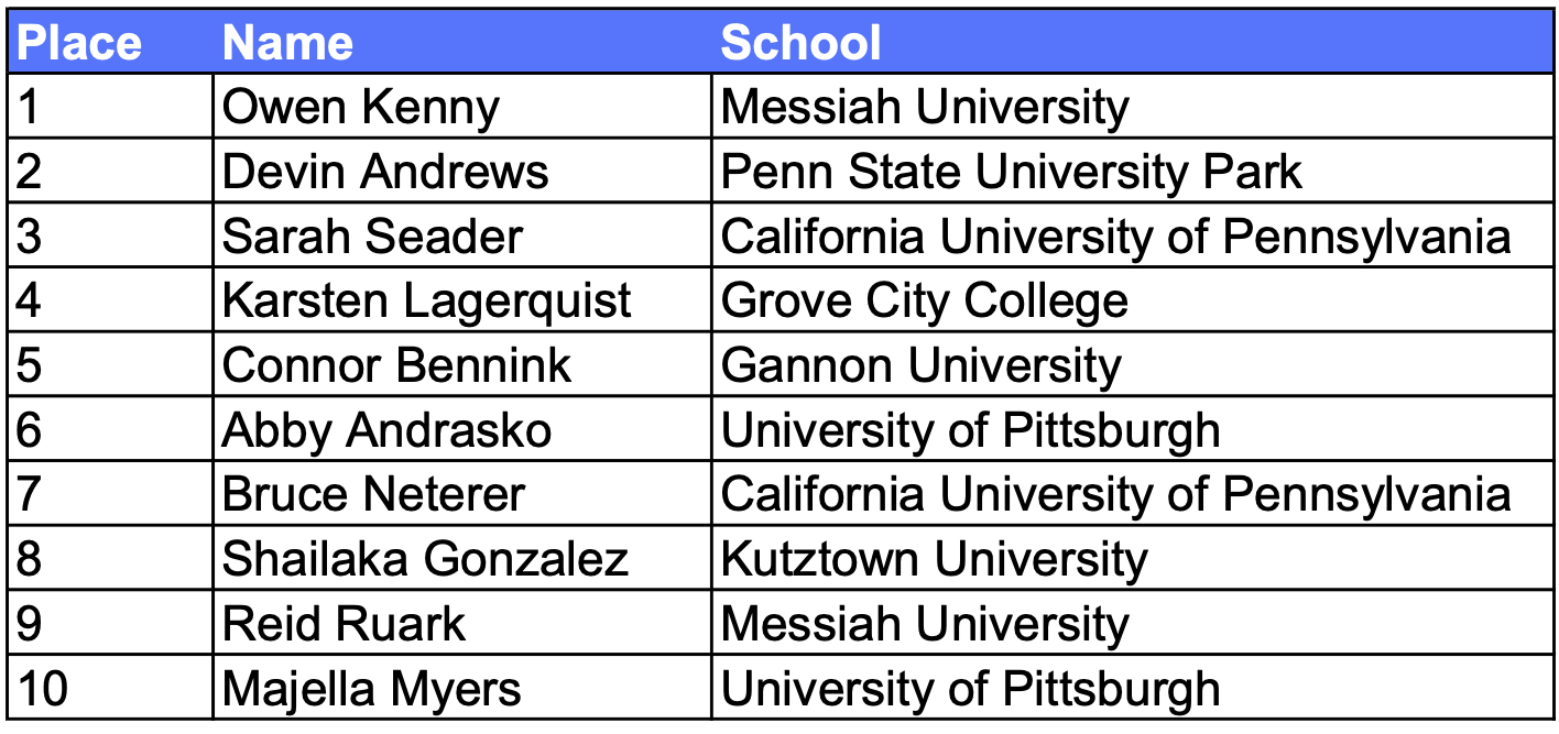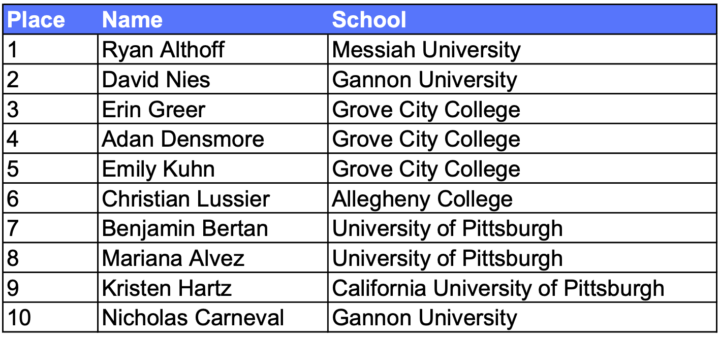 - University of Pittsburgh has the most Top-10 finishers (24 total)