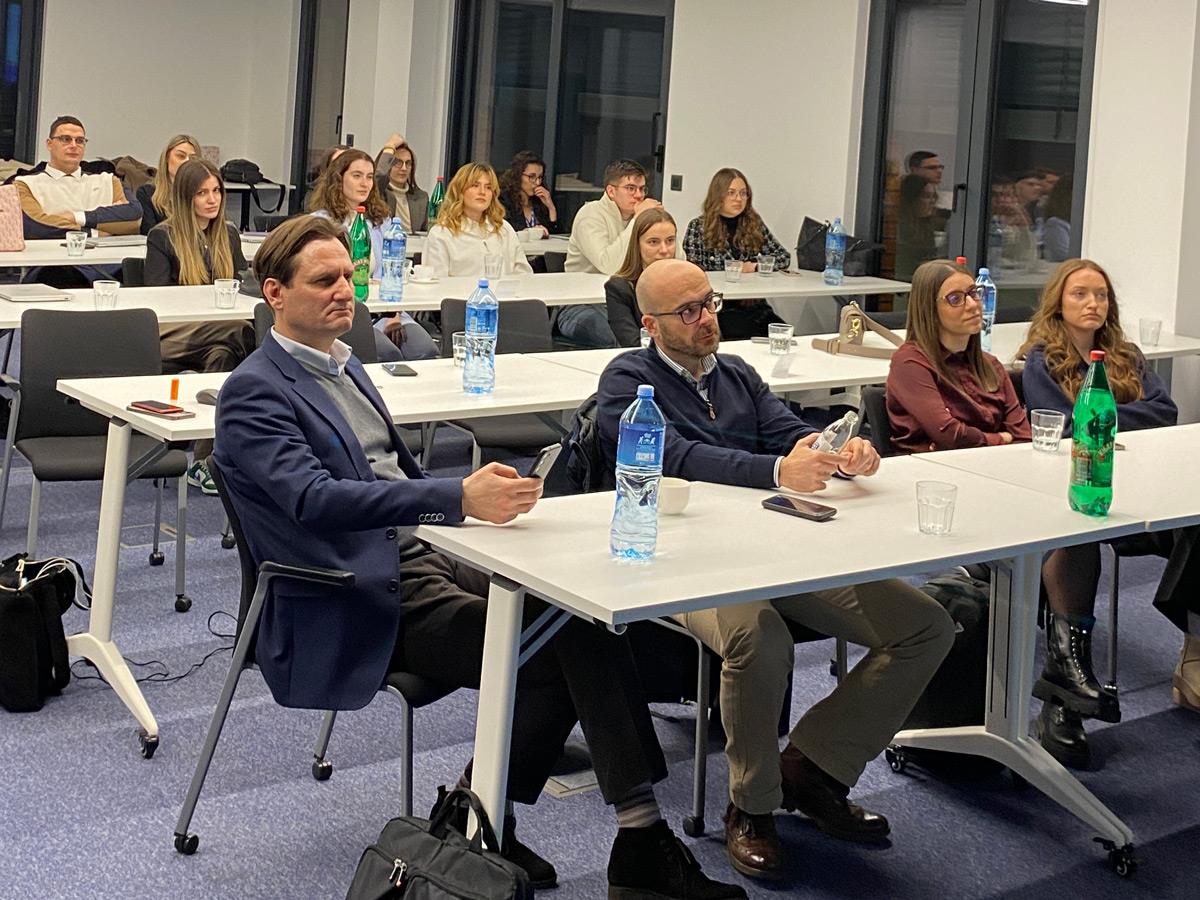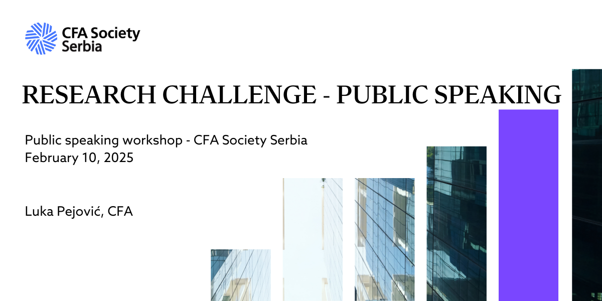 The workshop featured Luka Pejović, CFA, Head of Finance at Relio and Board Member of CFA Society Serbia, who delivered an insightful lecture on presentation techniques and public speaking strategies. Drawing from his extensive international experience in crowdfunding and venture capital financing, Pejović provided participants with valuable advice on effectively presenting financial research to judges and investors.