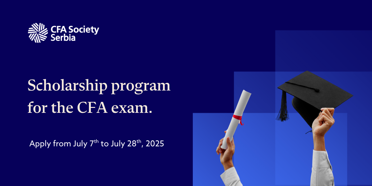 We are delighted to announce that CFA Society Serbia will award scholarships for CFA exam to the most suitable applicants this year as well, in order to support professional development and expansion of an investment community that adheres to the highest professional and ethical standards!