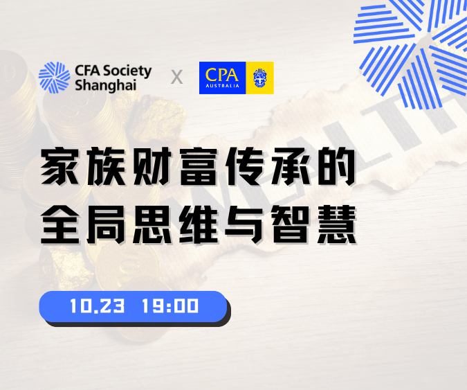 10月23日,CFA上海协会携手澳洲会计师公会带来讲座《家族财富传承的全局思维与智慧》,本次分享会邀请来自安永、礼丰律师事务所和博泽资产管理公司的专家,围绕税务、法律与家族办公室三大核心维度展开深入探讨,并通过实务案例与互动交流,助力会员构建合规、稳健且可持续的家族财富体系。