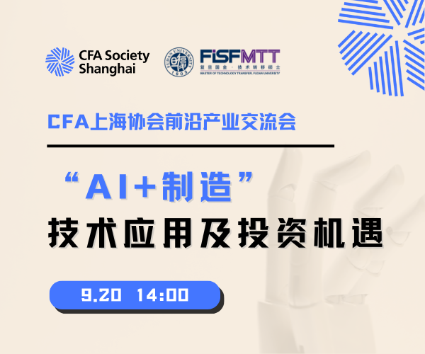 9月20日,CFA上海协会联合复旦大学国际金融学院技术转移硕士项目(MTT)推出「"AI+制造"技术应用及投资机遇」,聚焦制造业智能化升级转型过程中,人工智能机器人的产融发展背景、典型应用案例,以及人形机器人的产业趋势和投资模型,解读"科技牛"行情的崛起与趋势。
