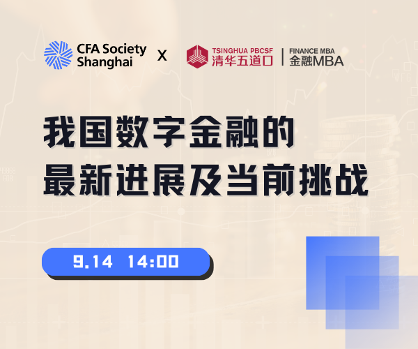 为紧跟技术演进方向、政策发展动态、行业实践先例,9月14日,CFA上海协会与清华五道口金融MBA教育中心联合主办讲座《我国数字金融的最新进展及当前挑战》,邀请到华夏银行原行长、清华大学五道口金融学院金融发展与监管科技研究中心主任张健华老师带来专业分享。