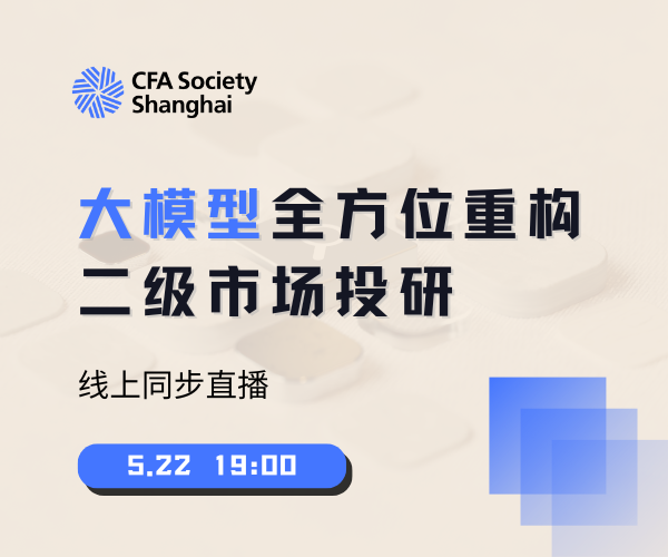 5月22日,CFA上海协会特邀国金证券金融工程首席分析师高智威,CFA,围绕“大模型重构二级市场投研”主题展开深度分享。活动聚焦大模型技术迭代趋势及其在资产配置、行业轮动、基金研究等领域的实践应用,为金融从业者描绘了一幅智能投研的创新图景。