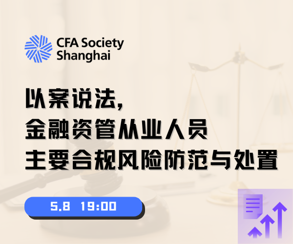 5月8日,CFA上海协会特邀上海中因律师事务所创始权益合伙人钟建律师,举办了主题为《以案说法,金融资管从业人员主要合规风险防范与处置》的讲座,介绍了职务侵占与挪用资金类职务犯罪以及非法经营类、内幕交易类与操纵市场类违法犯罪的法律条文、构成要件、立案量刑标准,并结合相关案例分析了相关行政刑事案件诉辩审的重难点问题,并介绍了金融机构、资管机构及从业人员合规风险防范理念、机制与方法。
