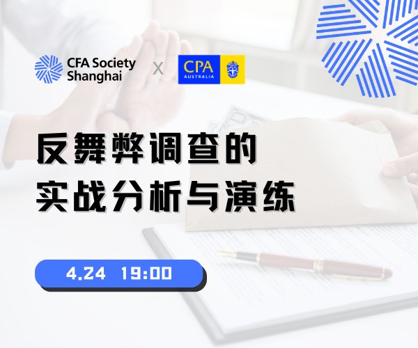 4月24日,CFA上海协会与澳洲会计师公会携手举办《反舞弊调查的实战分析与演练》专题讲座。讲座邀请到毕马威法证咨询服务总监张林带来分享,他将深入剖析企业舞弊的常见手段与隐蔽模式,通过实际案例分享,让参与者直观了解舞弊行为的本质与危害。