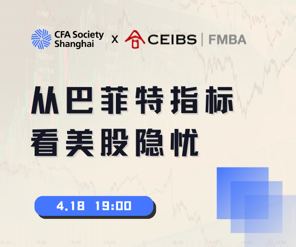 4月18日,CFA上海协会携手中欧国际工商学院金融MBA课程部,特邀自由投资人,公众号"小鲜传"主理人丁昶先生进行分享。从巴菲特指标入手,透过巴菲特的长期、宏观研究框架,对目前美股的估值状态进行分析。