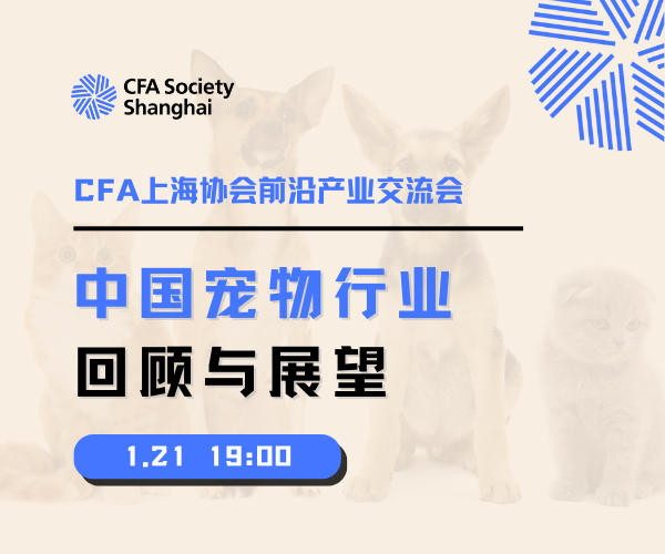 1月21日,CFA上海协会邀请到中信证券研究部农林牧渔行业分析师施杨先生,带来第四期前沿产业交流会活动——中国宠物行业回顾与展望:不畏浮云,登高望远,为参会会员深入解读宠物行业的发展机遇与投资逻辑。