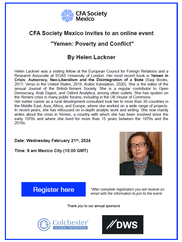 CFA Society Mexico: Webinar - Yemen: Poverty and Conflict