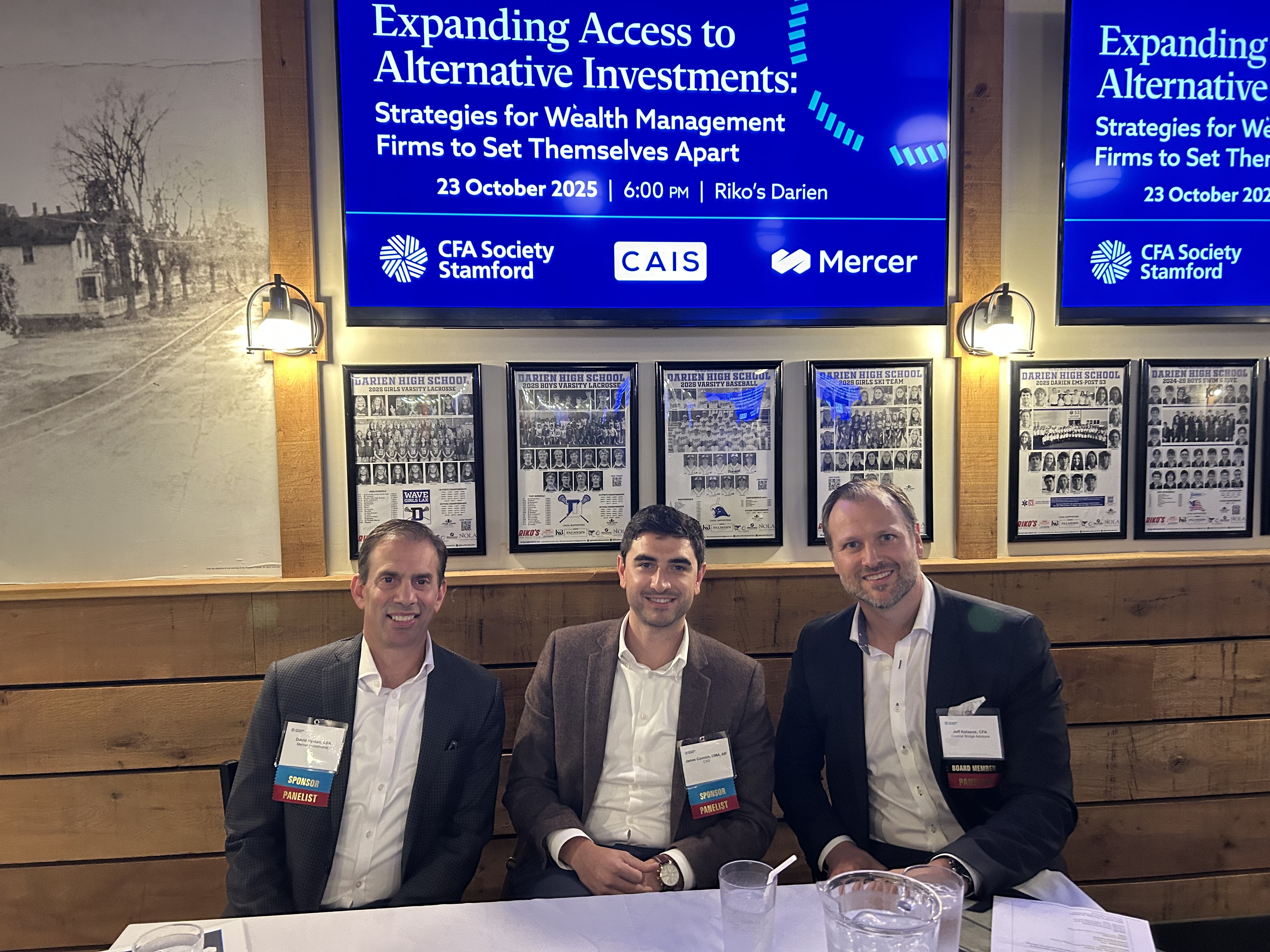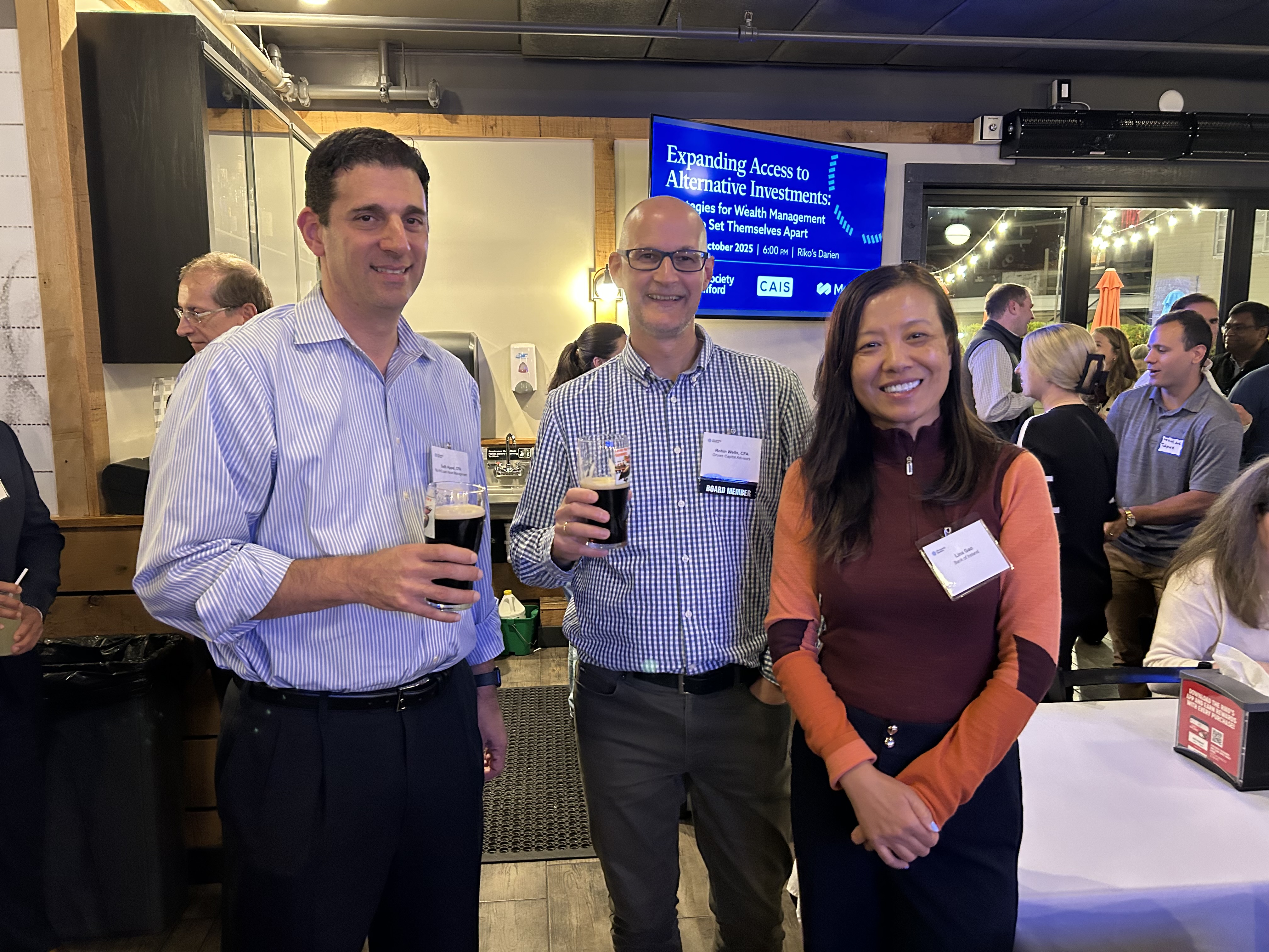 We had a great crowd on hand to listen to our panelists share best practices, insights, and actionable approaches to differentiating your firm through effective alternative investment offerings. Special thanks to Mercer - Investments and CAIS for sponsoring this event and to our excellent panelists, David Hyman, CFA, James Connors, CIMA®, AIF® and Jeffrey Kalapos, CFA.