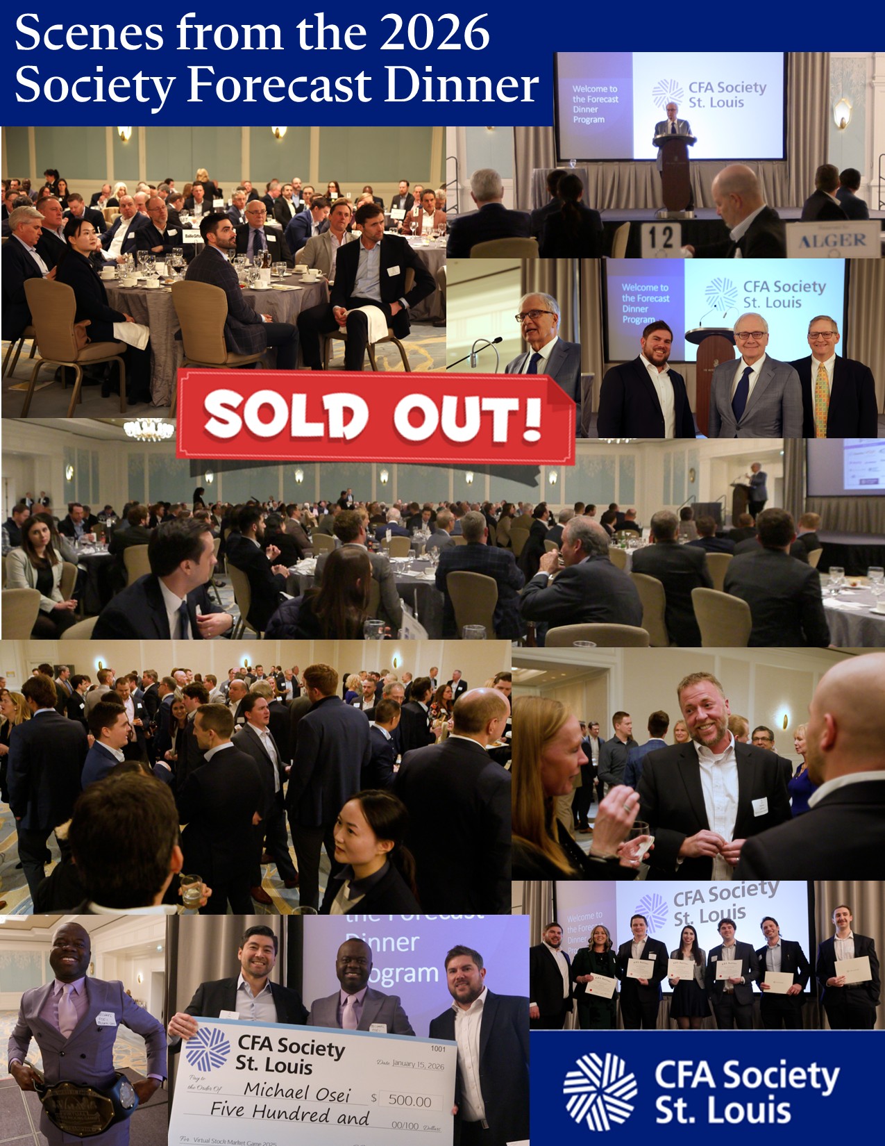 While CFA societies evolve their offerings to align with an ever-changing industry, certain events remain enshrined in the expectations of participating charterholders. One such event is the Annual Forecast Dinner, and to rise to those expectations, on January 30, CFA Society St. Louis hosted its 2025 Annual Forecast Dinner at the Hilton Frontenac. Drawing a wide crowd of investment professionals, the event began with the Society’s president, Ryan Tomlinson, CFA, celebrating the Society’s achievements and sponsors. This included First Trust Global Portfolios, Greenbacker, Guggenheim, and Tri-State Capital. He then highlighted the Society’s upcoming events (which can be found here:) https://www.cfasociety.org/stlouis/events/calendar?CommunityKey=5a6cbe4d-4bc2-470a-b8cd-0185e47e811c.