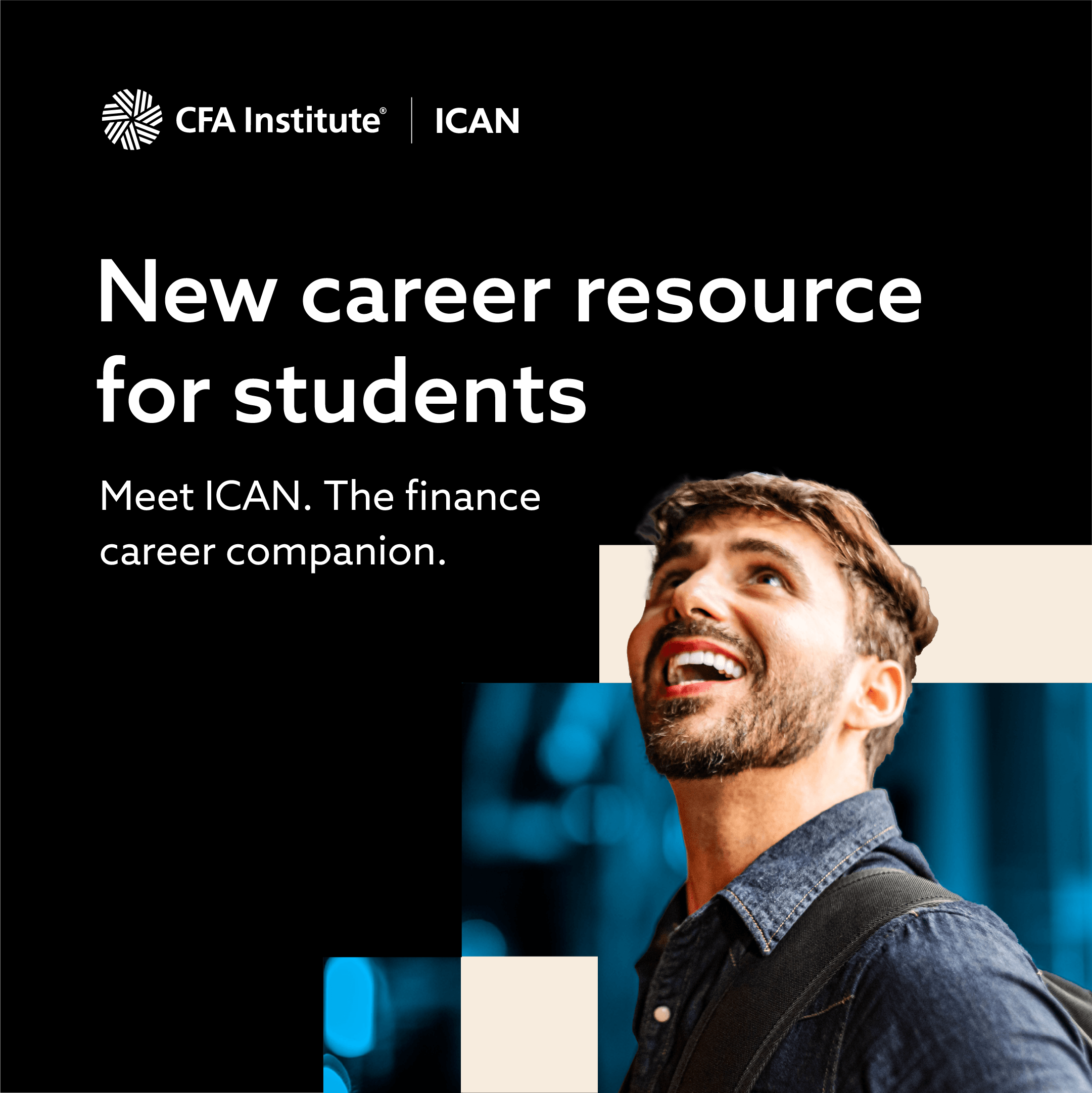 Stop guessing which career fits you. Find your first finance role with ICAN. ICAN (Investment Career Accelerator Network) is CFA Institute’s new career resource built for students. ICAN bridges the gap between classroom and career, helping you enter the investment industry.