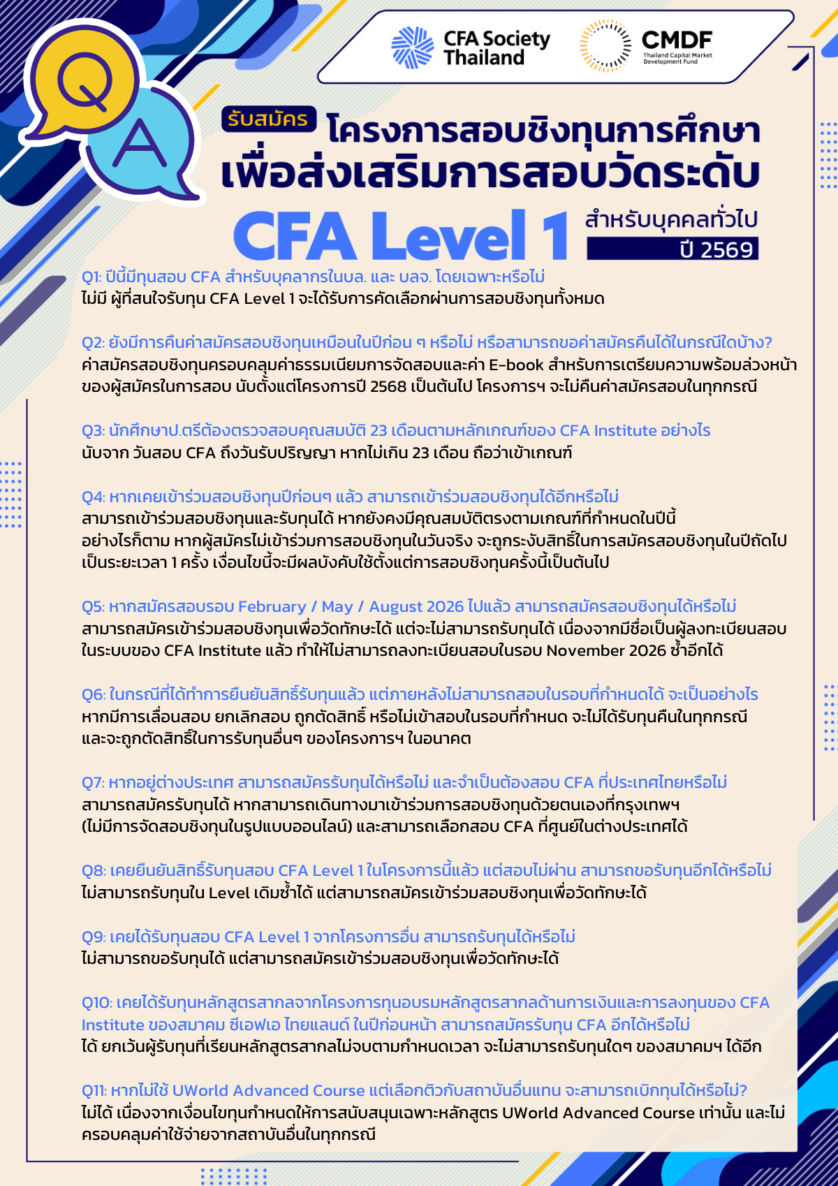 ทุนการศึกษาเพื่อส่งเสริมการสอบวัดระดับ CFA Level 1
