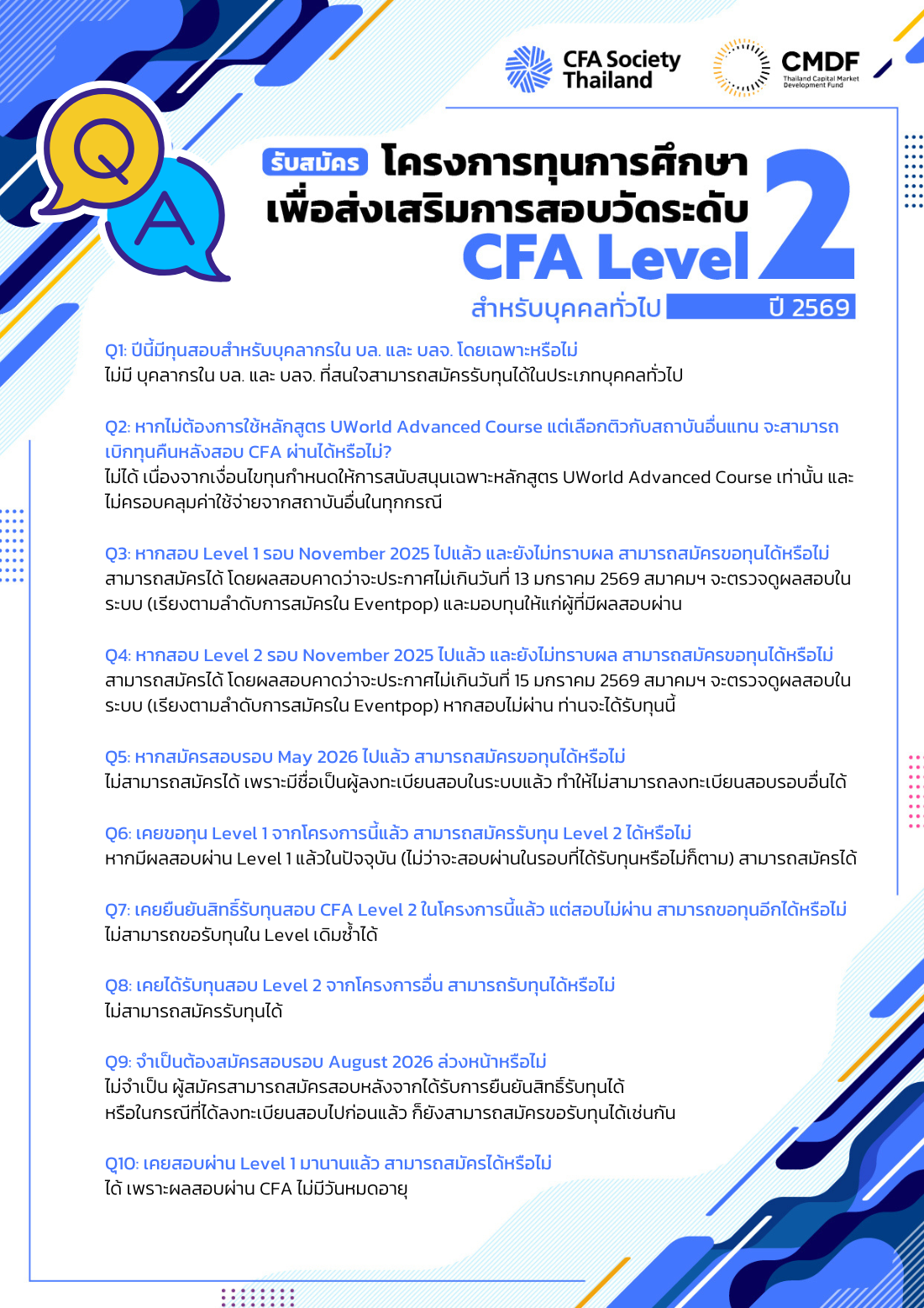 ทุนการศึกษาเพื่อส่งเสริมการสอบวัดระดับ CFA Level 2