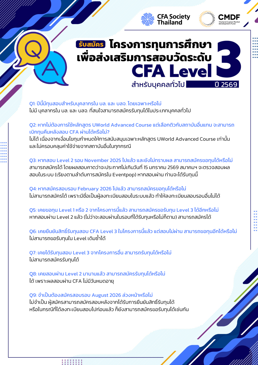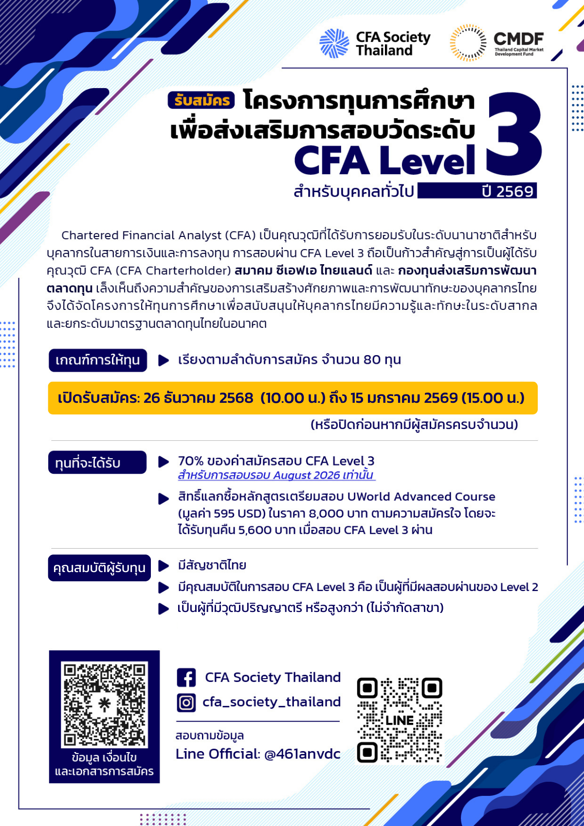 ทุนการศึกษาเพื่อส่งเสริมการสอบวัดระดับ CFA Level 3