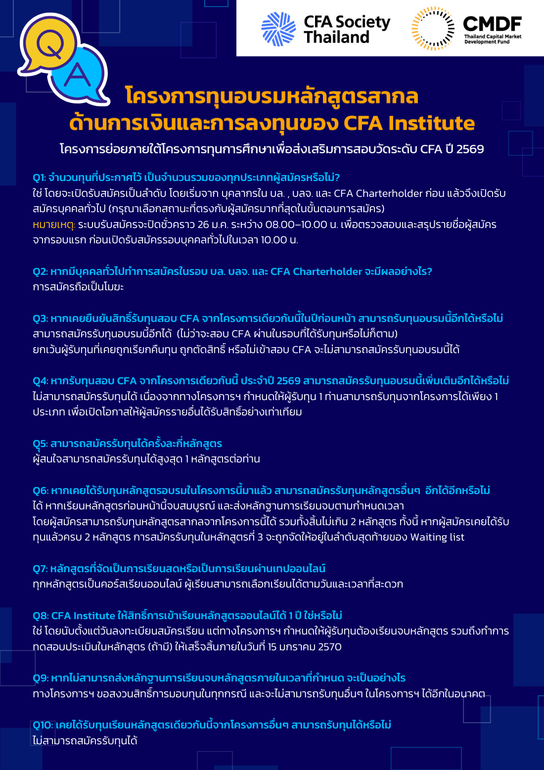โครงการทุนการศึกษาเพื่อส่งเสริมการสอบวัดระดับ CFA และอบรมหลักสูตรสากล