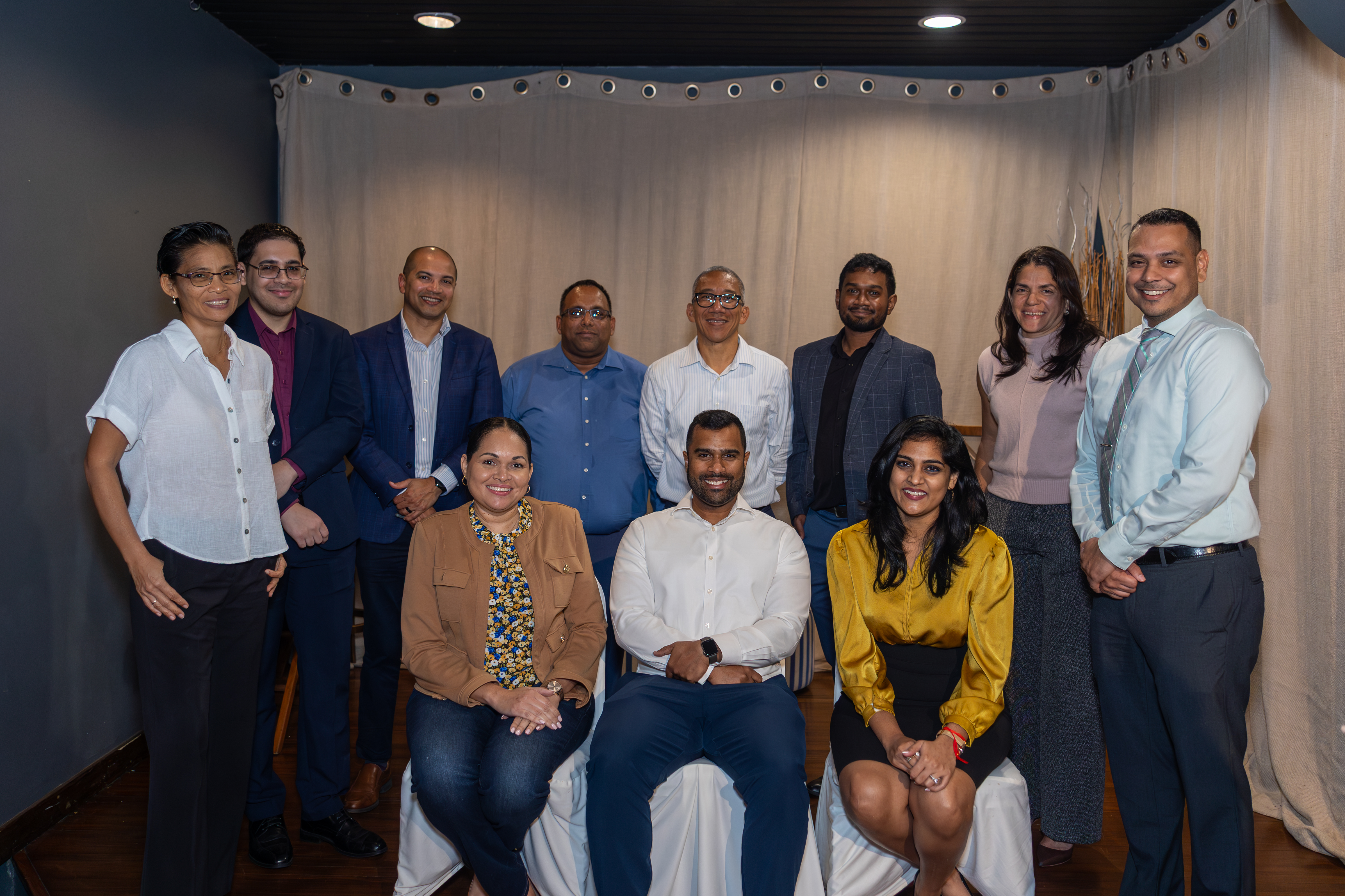 [Back row, from Left to Right]: Catherine Seeyave, CFA, Andrew Maharaj, CFA, Sean Achong, CFA, CTP, Jerome Gooptar, CFA, Robert Soverall, CFA, C.Dir, Marc Dwarika, CFA, Lisa Awai, Bsc, ACCA, CFA, Sanjay Roodal, CFA, FRM